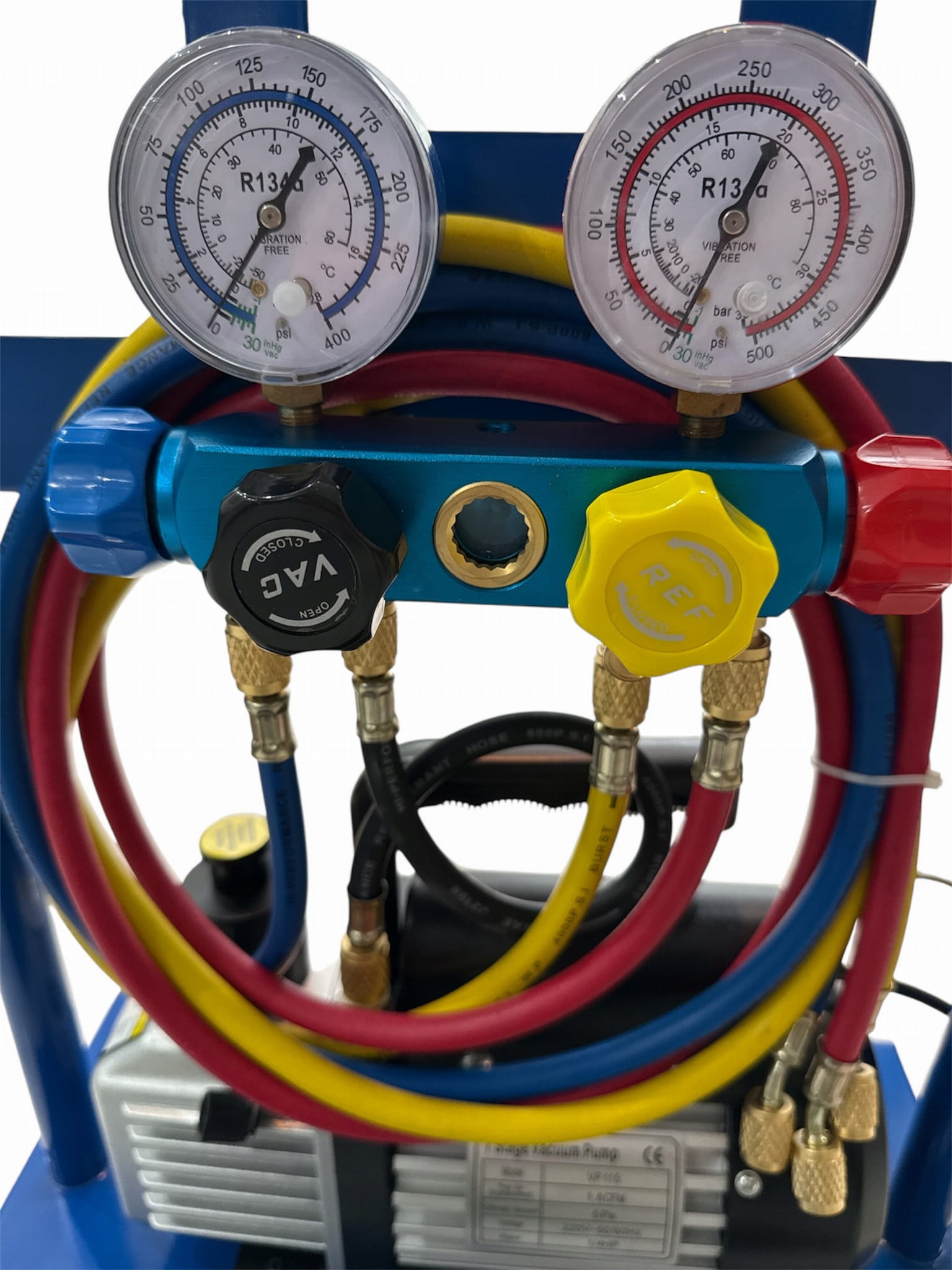 Pompa próżniowa + zestaw manometrów ( zamontowane na praktycznej platformie )